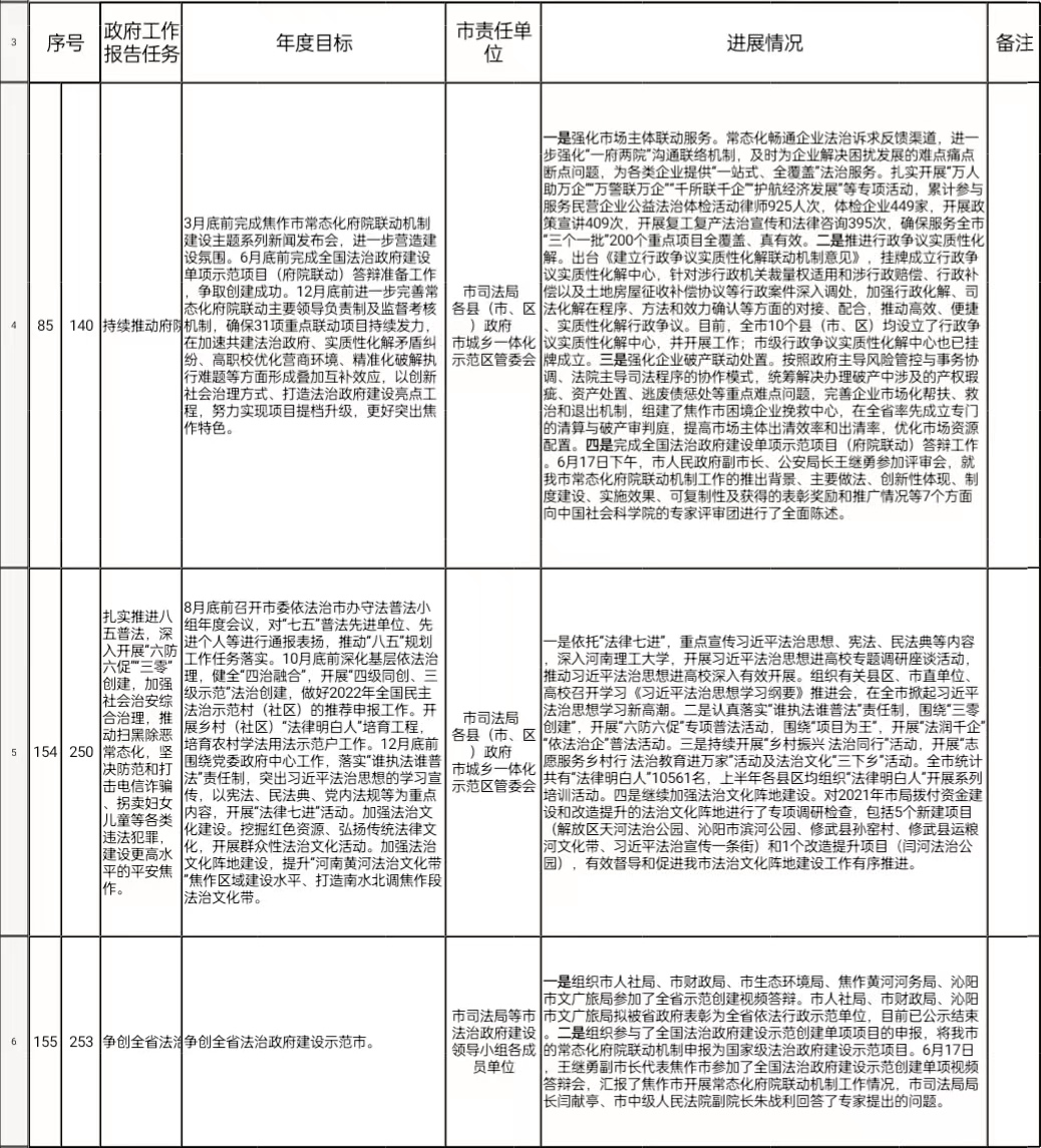 2022年市政府工作报告涉及重点工作任务台账